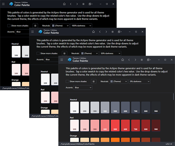 A new option was added for adjusting the darkness of the neutral color ramp, making it easier to fine‑tune dark theme aesthetics.  Make your dark theme appearance anywhere from a dark gray to very black.