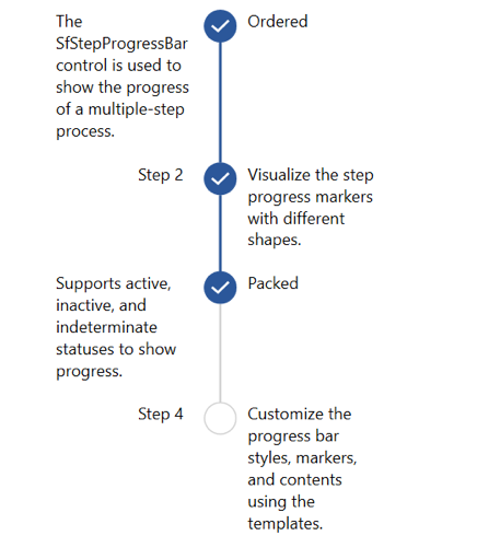 I would like to be able to place text on both sides (top/bottom or left/right depending on orientation) of the stepped progress bar, with the capability of using images and/or text. The reason why I would like icons is because they are language agnostic (no need to translate/localise) and can easily be recognised. Please make the text fully formattable, such that headings/bold, new lines and hypertext can be employed.
